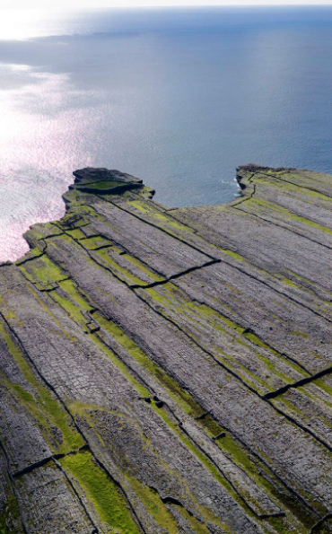 Individually Inis Mór (large island) has a population of 1000 people, Inis Meáin (middle island) has 200 inhabitants and Inis Oírr (easterly Island) although the smallest geographically, has a population of just under 300 people year round. The islands are made up of limestone and had no natural topsoil until early inhabitants mixed the soil with sand and seaweed to fertilise the landscape. The drystone walls are a significant feature of island life with narrow roads and pathways connecting the various townlands and villages. There are a number of pre historic monuments on all islands some dating back thousands of years with Dún Aengus (Fort) perched on a cliffside on Inis Mór, St. Benin’s church known as the smallest church in the world, O Brien’s castle on Inis Oírr and Dún Chonchúir on Inis Meáin.